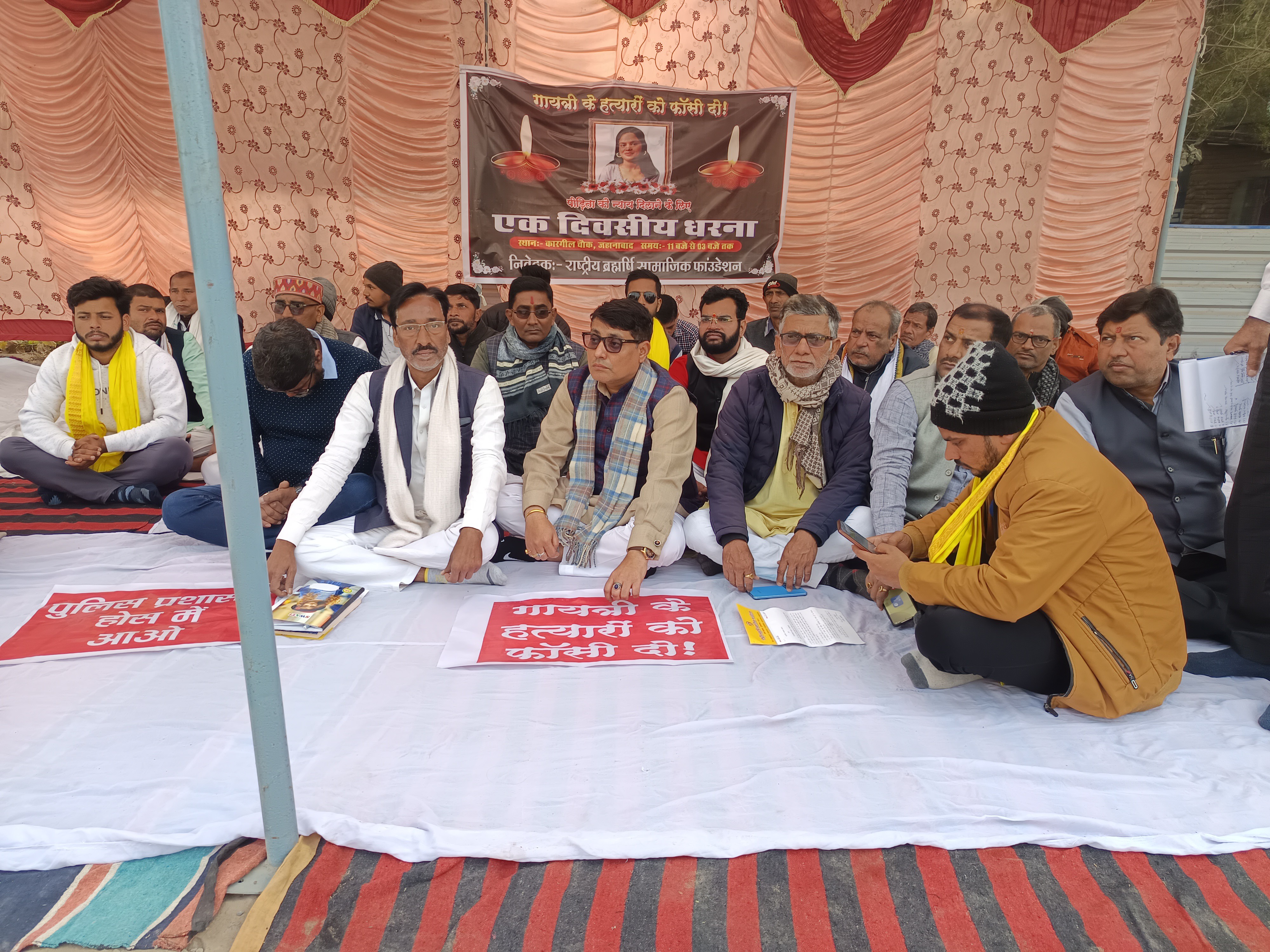 नीट छात्रा की मौत पर ब्रह्मर्षि समाज का धरना:विधायक ने प्रशासन पर लीपापोती का आरोप लगाया, CBI जांच की मांग की