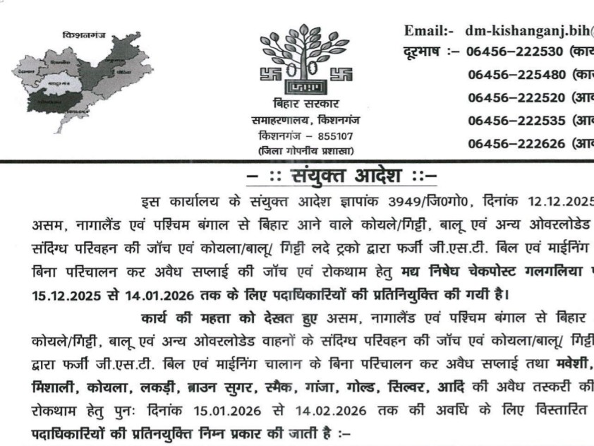 किशनगंज के गलगलिया चेक पोस्ट पर अभियान एक महीने बढ़ा:DM बोले-अवैध तस्करी और ओवरलोडिंग रोकने उद्देश्य