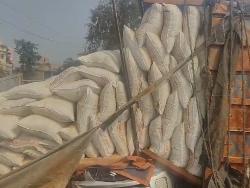 पूर्णिया में लोडेड ट्रक पलटा:बाल-बाल बची कार ऑनर की जान, गाड़ी क्षतिग्रस्त; मुर्गी का दाना अनलोड करने जीरो माइल जा रहा था