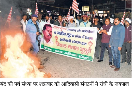 आदिवासी संगठनों ने निकाला मशाल जुलूस:सोमा मुंडा हत्याकांड के विरोध में आज झारखंड बंद, रांची के कई स्कूलों में छुट्टी