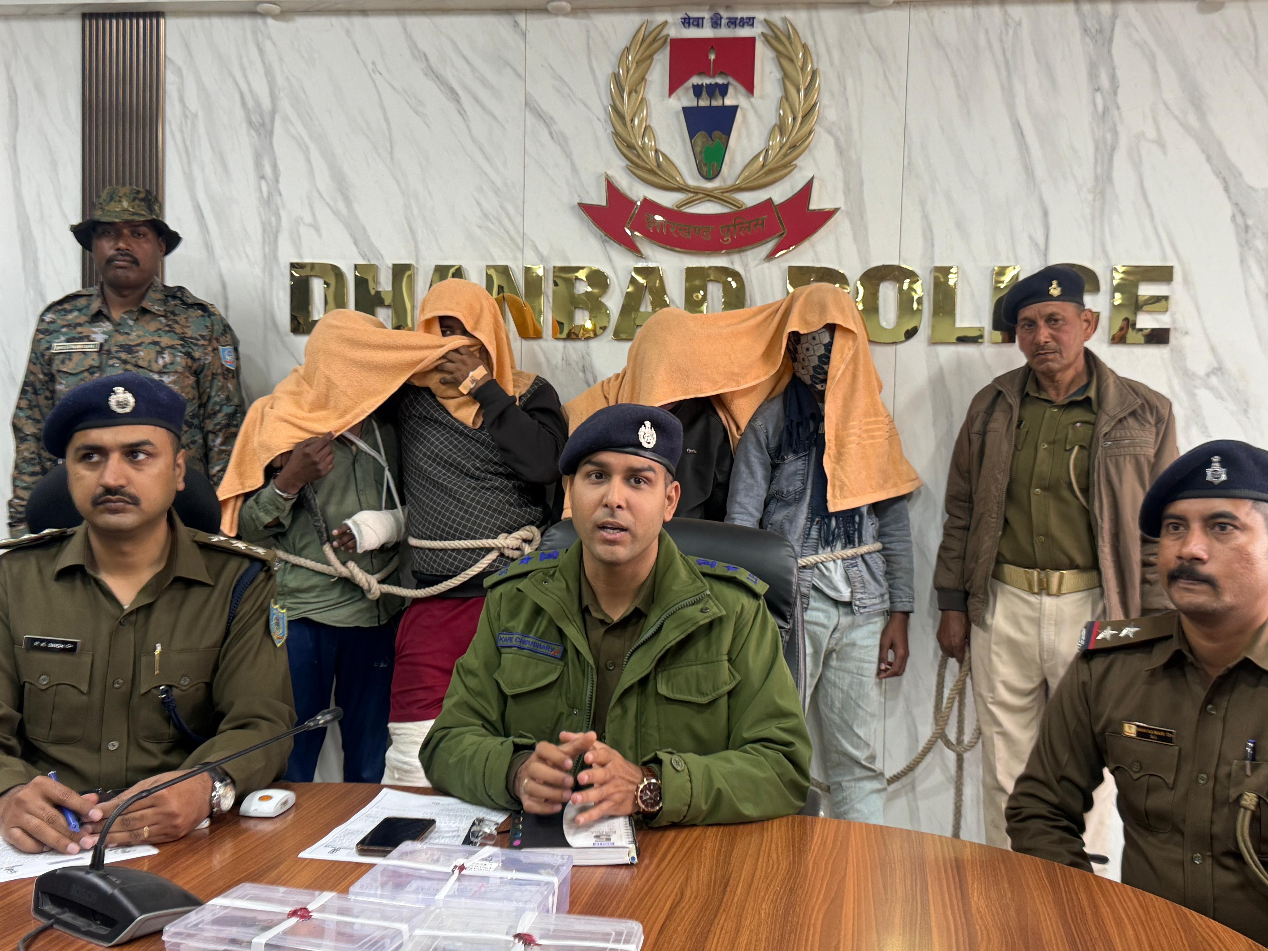 धनबाद के राजगंज में चार हथियारबंद अपराधी गिरफ्तार:बड़ी वारदात की साजिश नाकाम, पुलिस ने पीछा कर आरोपियों को पकड़ा