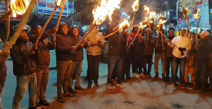 चक्रधरपुर में भी बंद के समर्थन में निकाला मशाल जुलूस